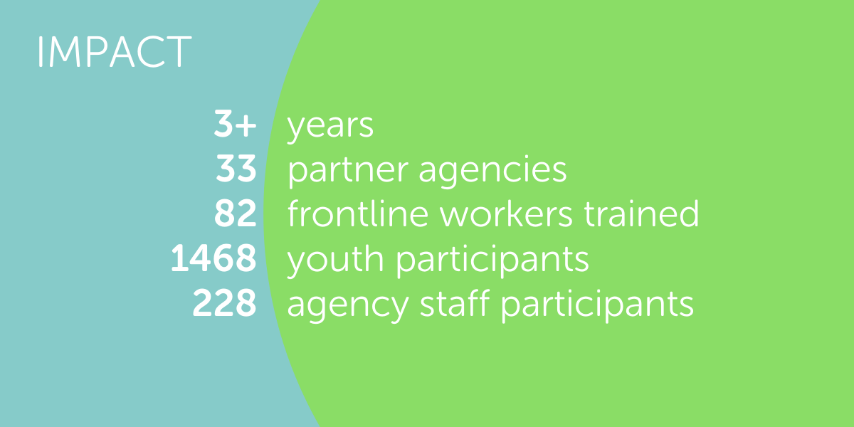 “The fact that such a comprehensive and in-depth training program is available to youth workers for free is amazing. We are a sector that is often underserved and has limited professional development opportunities for staff. This is an amazing gift to the sector.” – Front-line Worker