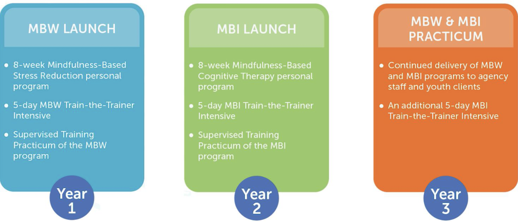 The frontline workers were trained to deliver these two programs to youth: Mindfulness-Based Wellness (MBW) & Mindfulness-Based Intervention (MBI).
